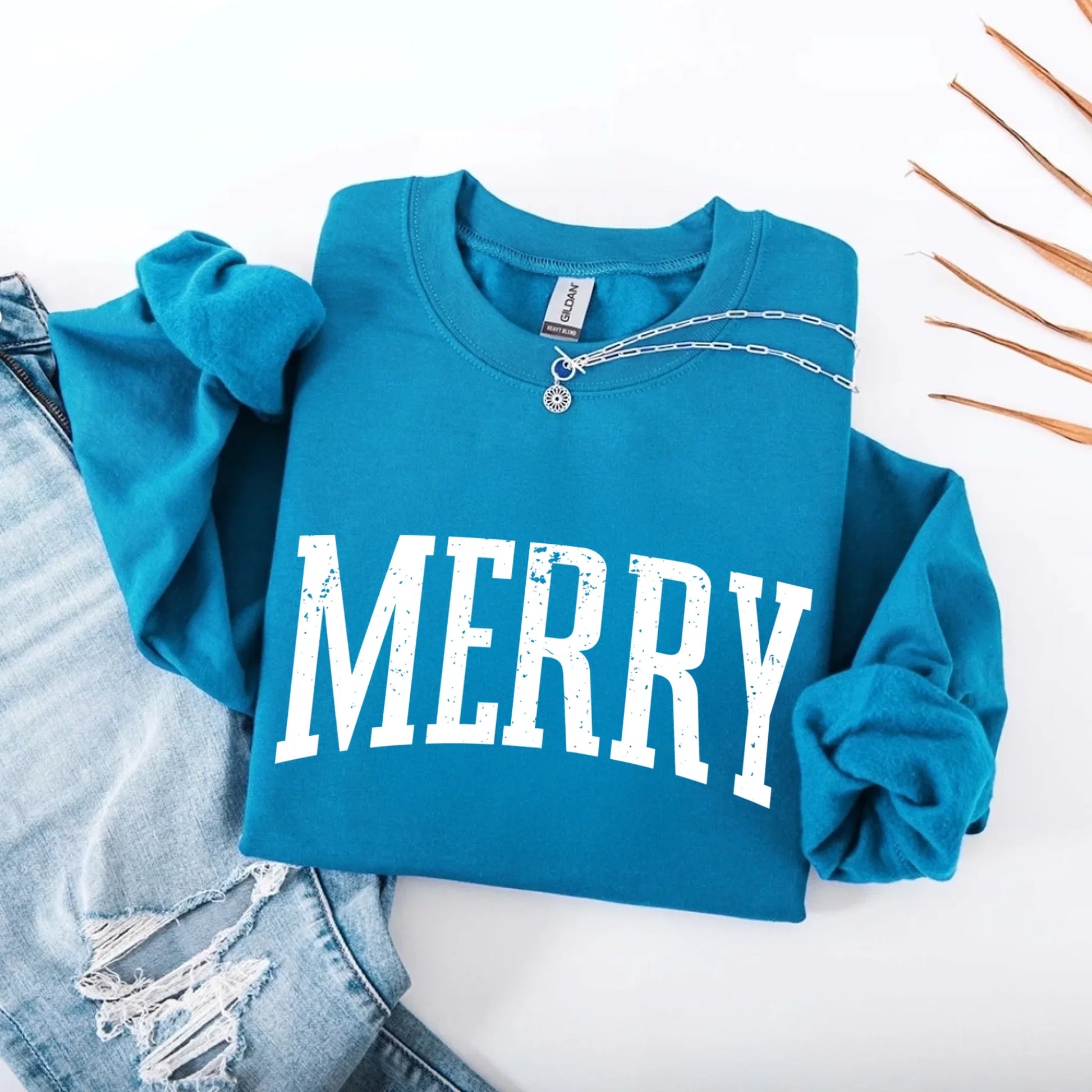 Retro Merry Christmas Sweatshirt Festive Women’s Holiday Sweater